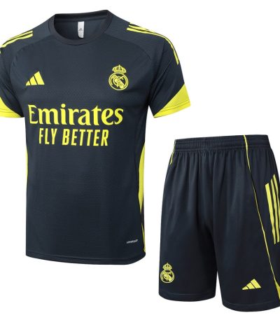 Ensemble Maillot Short Real Madrid 2025 2026 Noir Jaune